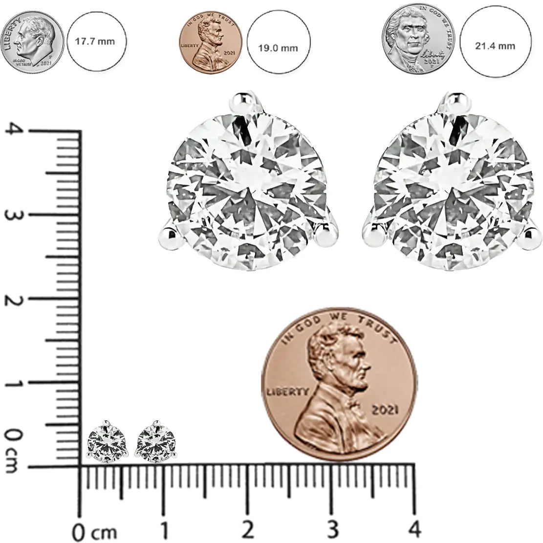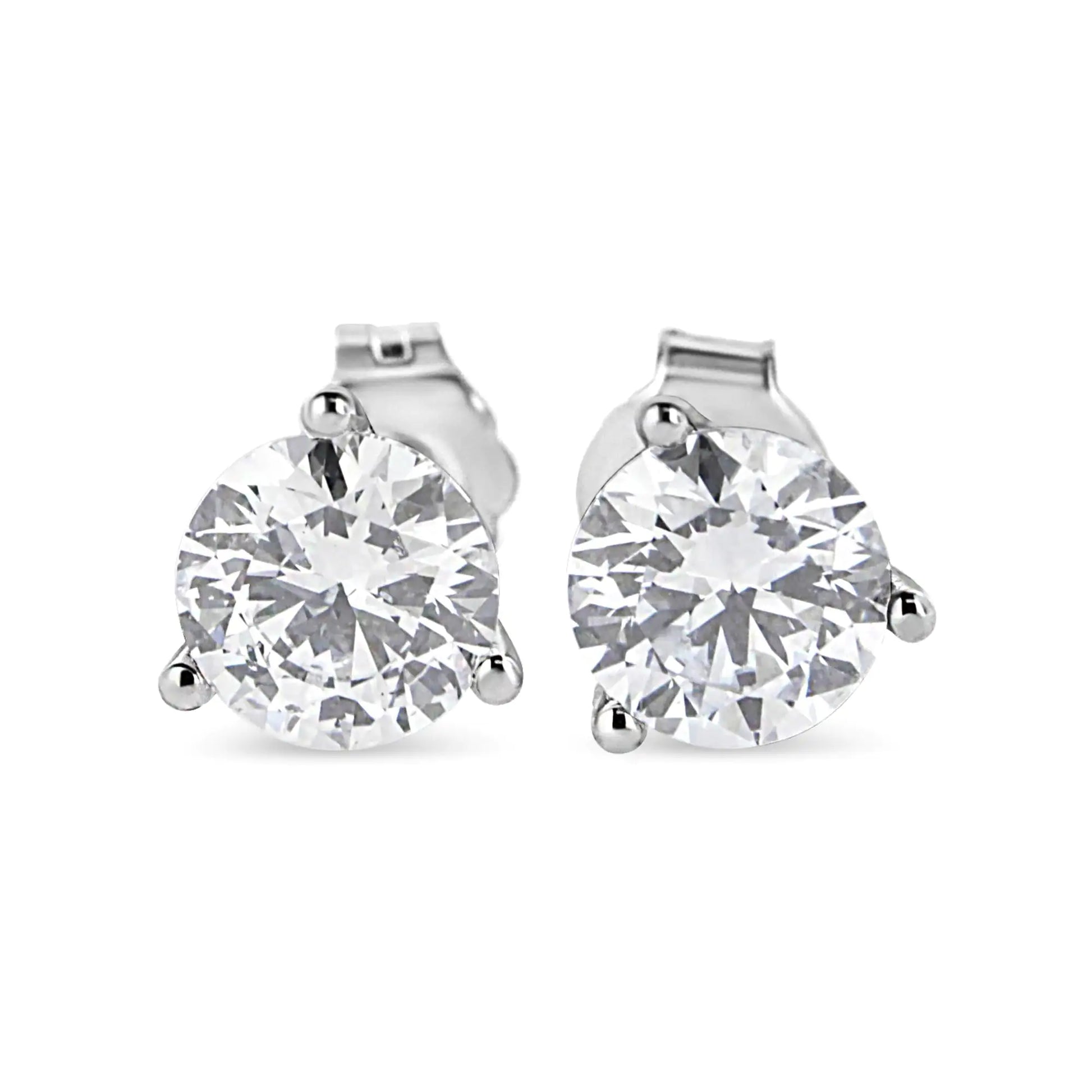 A timeless jewelry essential, these white diamonds studs will bring unparalleled sparkle to your ears. These elegant lab grown diamond stud earrings feature a 3 prong martini setting in a glistening 14k white gold metal. The 2 round, brilliant lab-grown diamonds radiate a beautiful white sparkle as they float within the four-prong setting of these 14k white gold stud earrings. Each lab-grown diamond is crafted to the highest standards and has an approximate VS2-SI1 clarity and F-G color making them essentially flawless to the naked eye. The studs include dazzling round-cut lab grown diamonds with a total weight of 2 carat and come with screw backs.