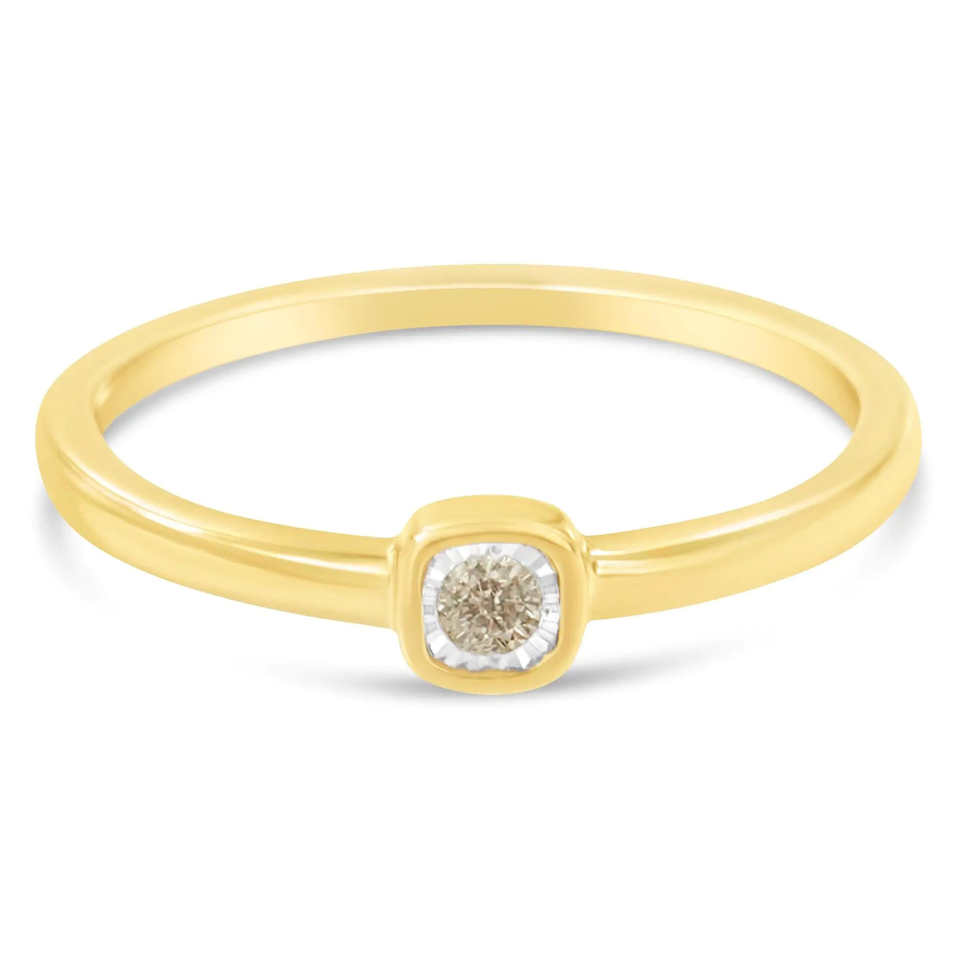 14K Yellow Gold Plated .925 Sterling Silver 1/20 Carat Diamond Square Cushion-Shaped Miracle Set Petite Fashion Promise Ring (J-K Color, I1-I2 Clarity)