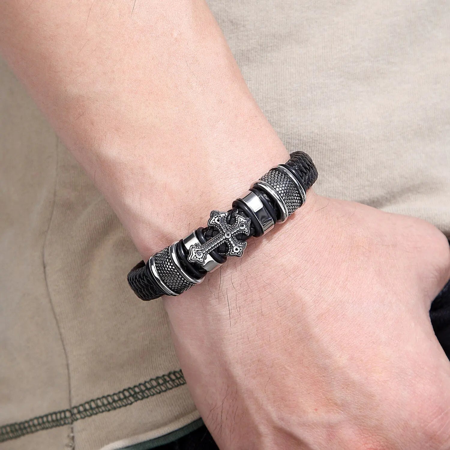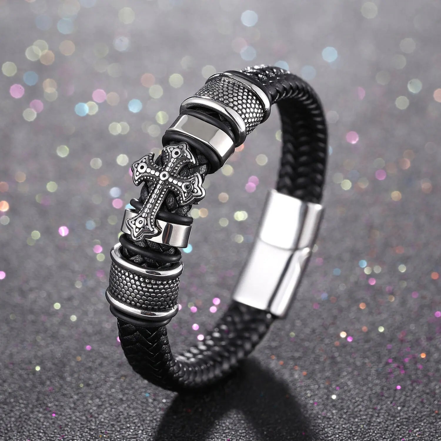 Embrace your spirituality while exuding unmatched style with our captivating cross bracelet and vintage ring. Each piece is meticulously designed to reflect your devotion while making a bold statement in the world of fashion, symbolizing your unwavering faith with impeccable elegance.