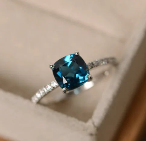 Crystal Blue Square Stone Ring