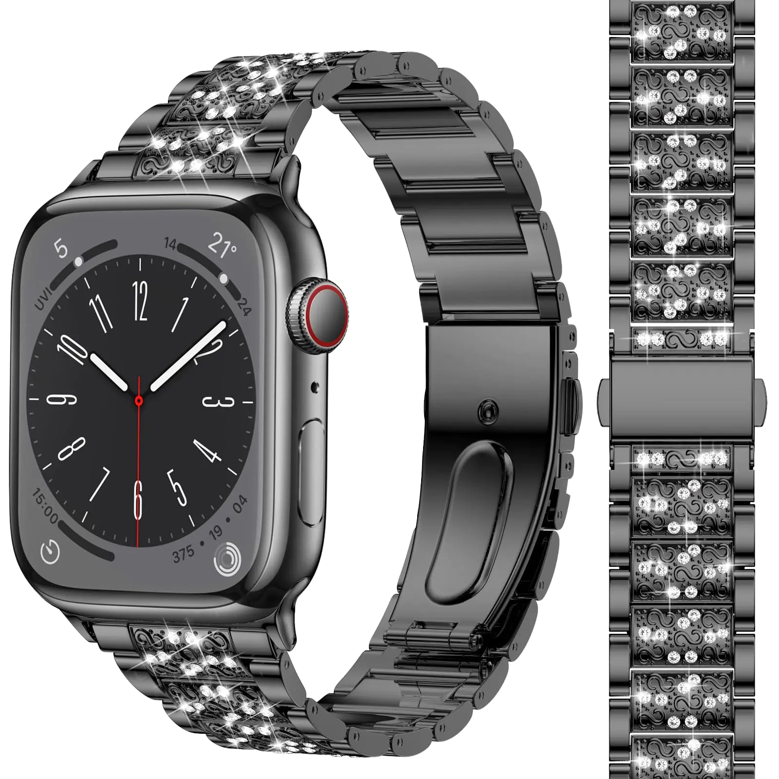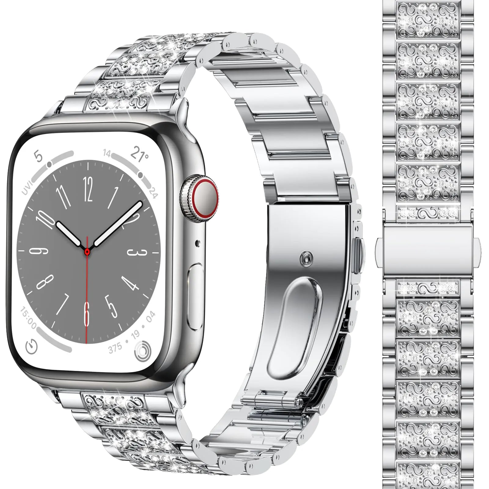 MARGE PLUS Compatible with Bling Apple Watch Band Women 46mm 45mm 44mm 42mm Series 10 9 8 7 6 5 4 3 2 1 SE, Upgraded Sparkle Replacement Bracelet iWatch Band, Diamond Rhinestone Stainless Steel Metal Strap