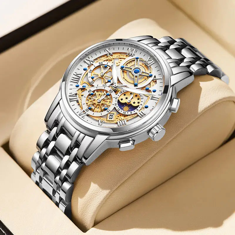 Elevate your style game with The Masculino LIGE Watch—an emblem of strength and sophistication that speaks volumes about your confident demeanor. Crafted with precision and attention to detail, this watch is a true masterpiece, boasting impeccable design and a striking dial that commands attention. Whether you're dressing up for a formal event or adding a touch of class to your everyday ensemble, The Masculino LIGE Watch is the perfect accessory to elevate any look. Its bold design exudes masculinity and modernity, reflecting your distinguished taste and charisma with every glance. Step into the spotlight and let your wrist do the talking with The Masculino LIGE Watch. Make a statement, make an impression—order yours today and redefine your style!"