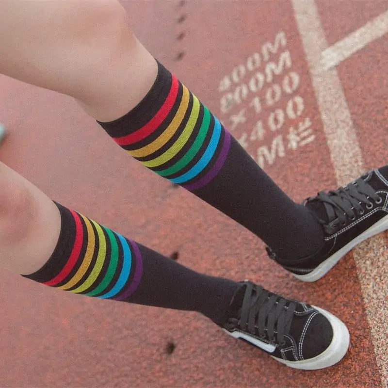 Make Every Day a Little Brighter with Rainbow Knee Cotton Socks
